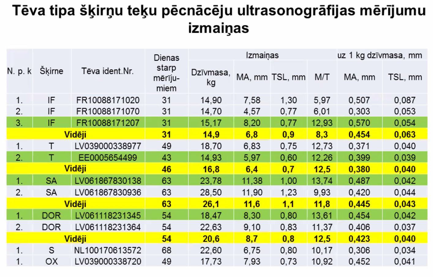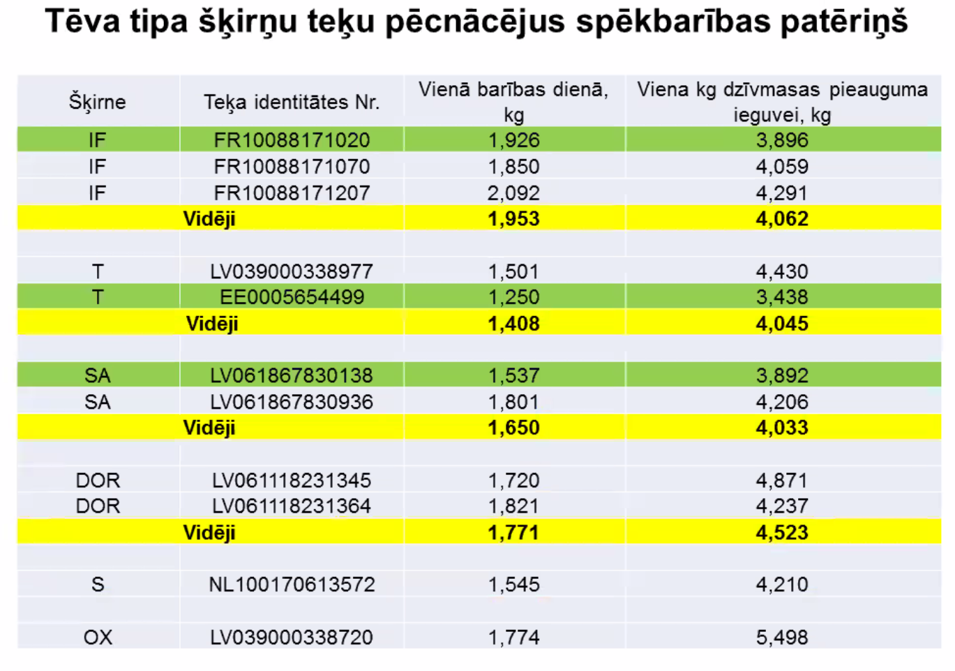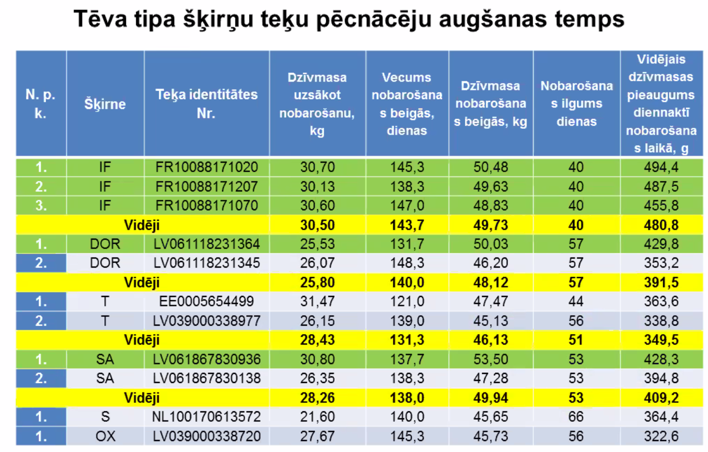 Lai gan rezultāti tika ievākti pirms trīs gadiem, domājams, ka tie joprojām ir aktuāli un parāda tendences. Tā kā audzējam tikai Ile de France šķirnes dzīvniekus diemžēl nav salīdzinājums ar tīršķirnes LT jēru pieaugumu, bet to iespējams atrast dažādos LAAA projektos un noteikti arī savas saimniecības pieredzē.