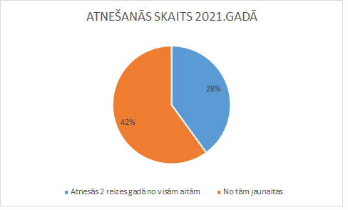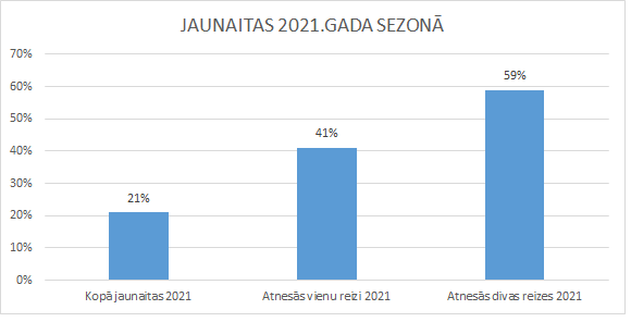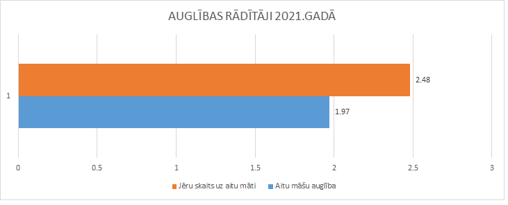 Jāpiebilst, ka 42% no dzīvniekiem bija jaunaitas, kuras pirmo reizi atnesās februārī un otro – novembrī. Apkopojot jēru skaitu pret aitu māšu skaitu, kuras atnesās, vidējā auglība 2021.gadā bija 248%.