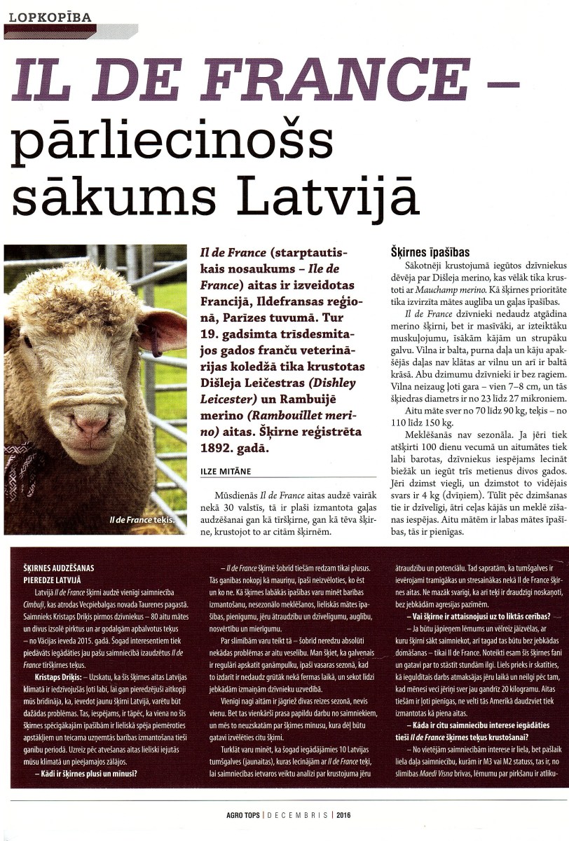 VIENĪGĀ ILE DE FRANCE SAIMNIECĪBA LATVIJĀ